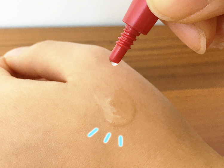 完成した美容液を手に取ってみるとビックリ。手に乗せただけなのに、すぐに肌にキューっと浸透※1しました。