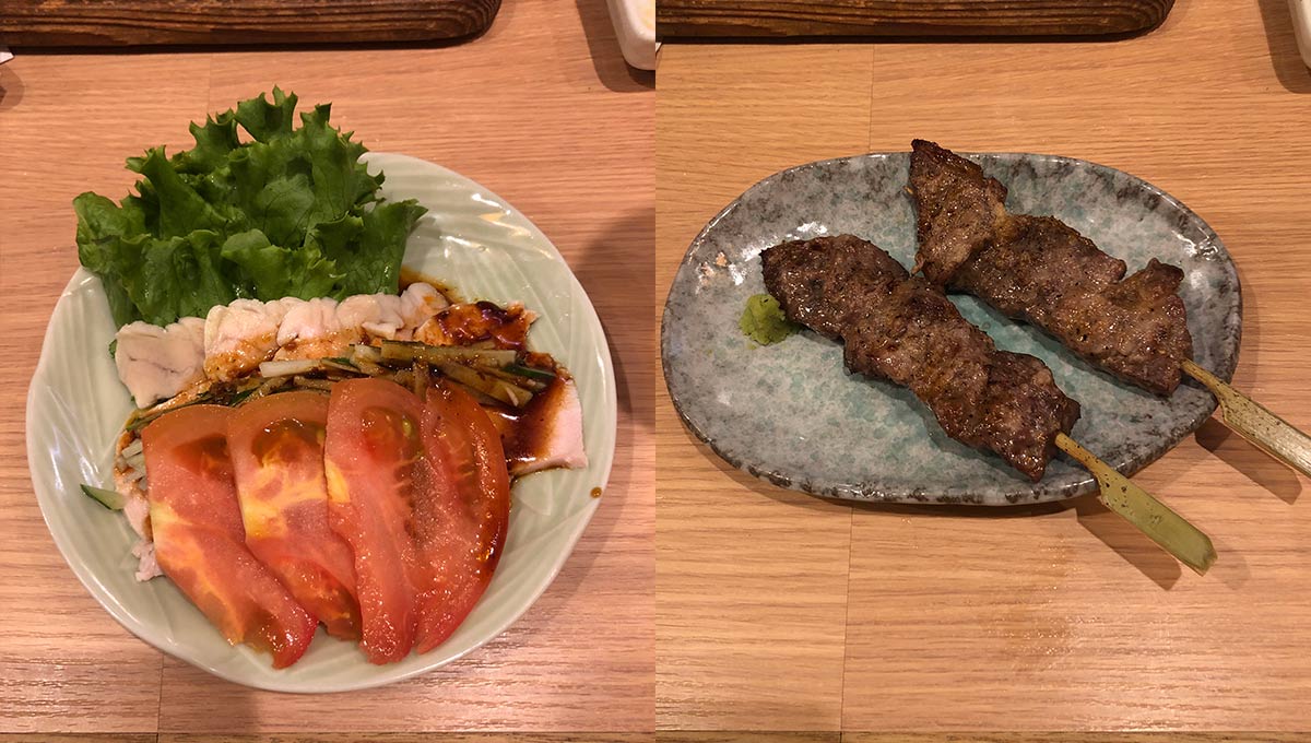 食べ物は「よだれ鶏」と「牛串焼」をチョイス。料理はどれもおいしいんですがこの時点で中年的にはけっこう腹にたまりました…