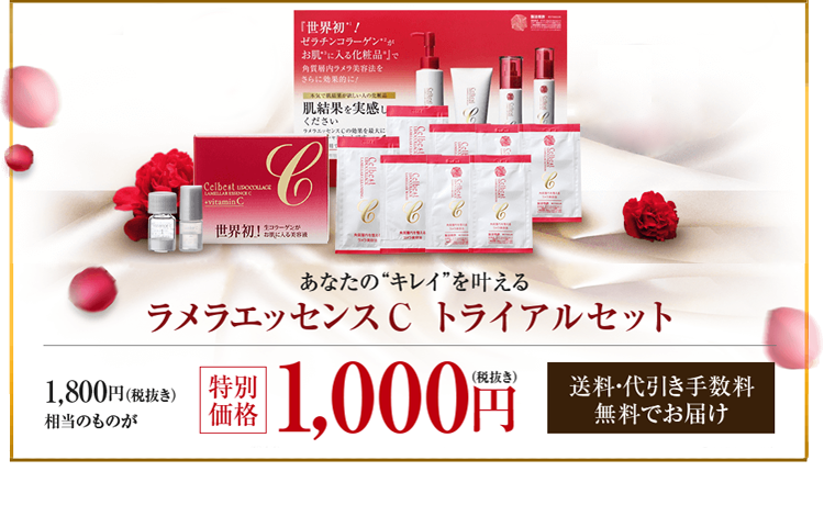 しかし、なんとトライアルセットならたった1,000円(税抜き)で「生コラーゲン」が試せるんです。しかも送料と代引き手数料は無料。超気軽に試すことができるんです!