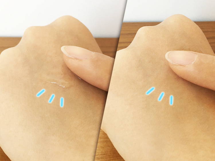 手になじませると、肌にスーッとなじんでいくのが分かります。